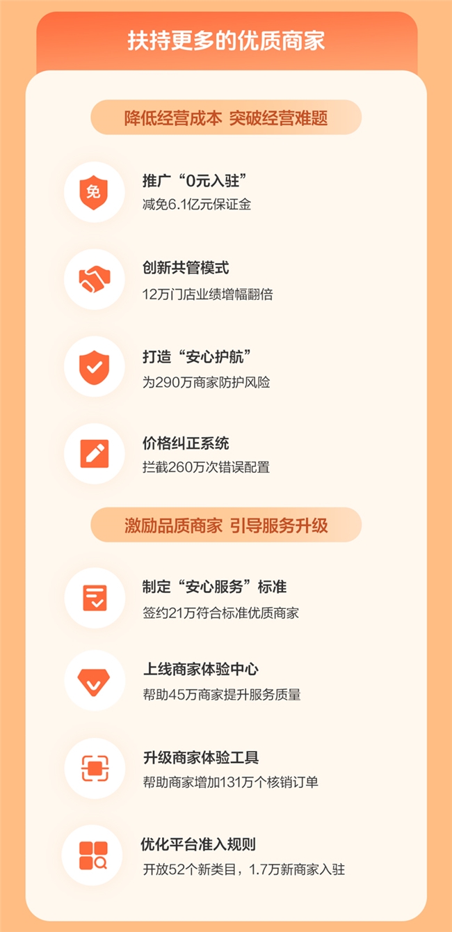 诠释判辨,抖音活命职业陆续优化商家相沿体系,通过缩短谋略本钱、翻新谋略形状、强化职业保险等举措,全面助力商家健康发展,捏续教育谋略效力与职业质料。2025年,平台累计减免6.1亿元入驻保证金,缩短商家谋略本钱。翻新的共管形状上线之后,共管商家与被共管门店均完了事迹增幅翻倍。